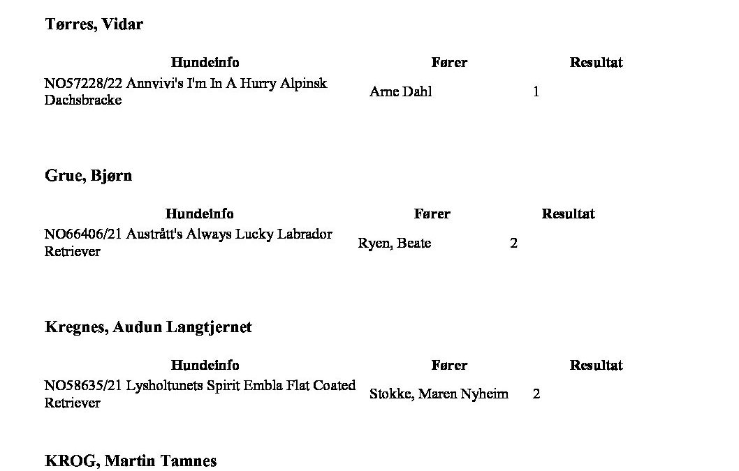 Resultater løshund 2025